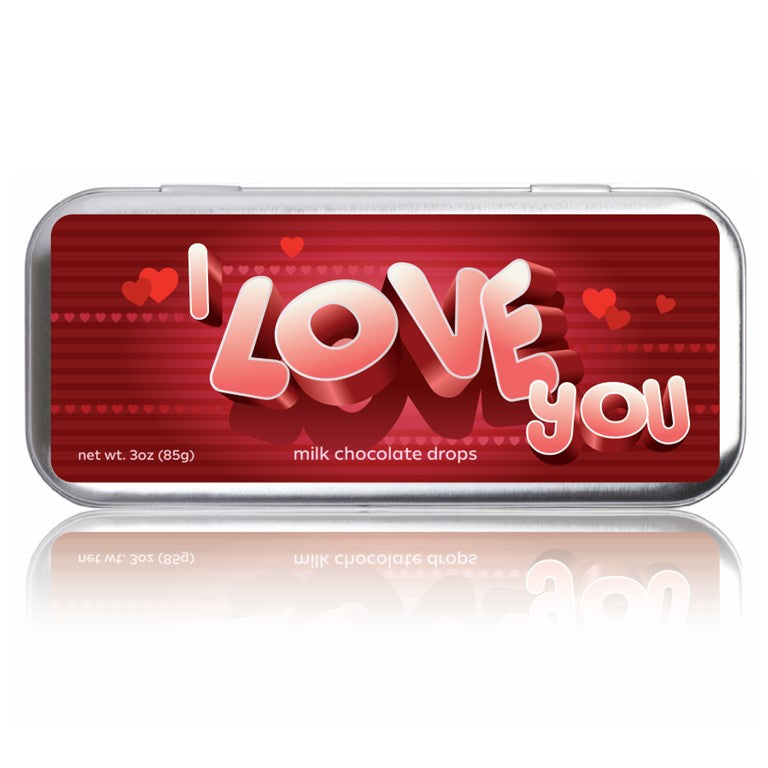 Confess your love with our I Love You gourmet milk chocolate tin! This 3oz tin is filled with creamy and delicious milk chocolate, perfect for any romantic occasion. Say "I love you" in a sweet and unique way with our milk chocolate tin.