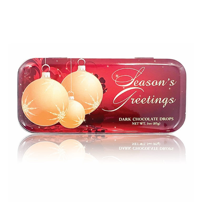 Indulge in the luxury of our Season's Greetings Chocolate tins, perfect for gifting to loved ones. Each elegant tin is filled with 3oz of rich, dark chocolate, guaranteed to bring joy and delight to anyone's day.